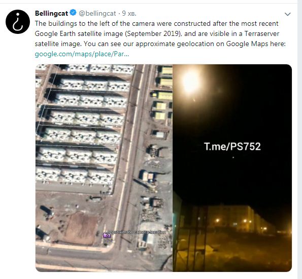 Міжнародна група розслідувачів Bellingcat стверджує, що з’ясувала приблизне місце, звідки велася зйомка, вона збігається з траєкторією польоту «Боїнга». Це мікрорайон на південно-західній околиці столиці країни, неподалік міжнародного аеропорту, з якого вилетів уранці український борт.