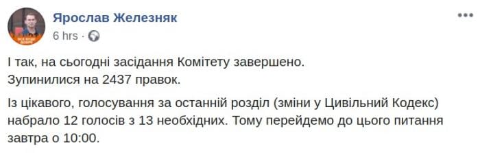 Це становить 15% від загальної кількості правок. Про це народний депутат із фракції «Голос» Ярослав Железняк повідомив на своїй сторінці в соціальній мережі Фейсбук.