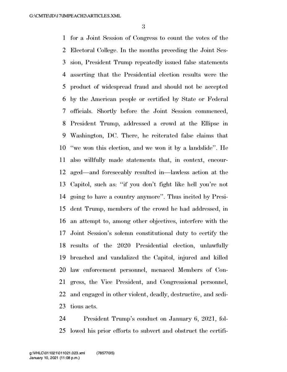 Згідно із текстом резолюції, Трампа звинувачують у підбурюванні до заколоту.