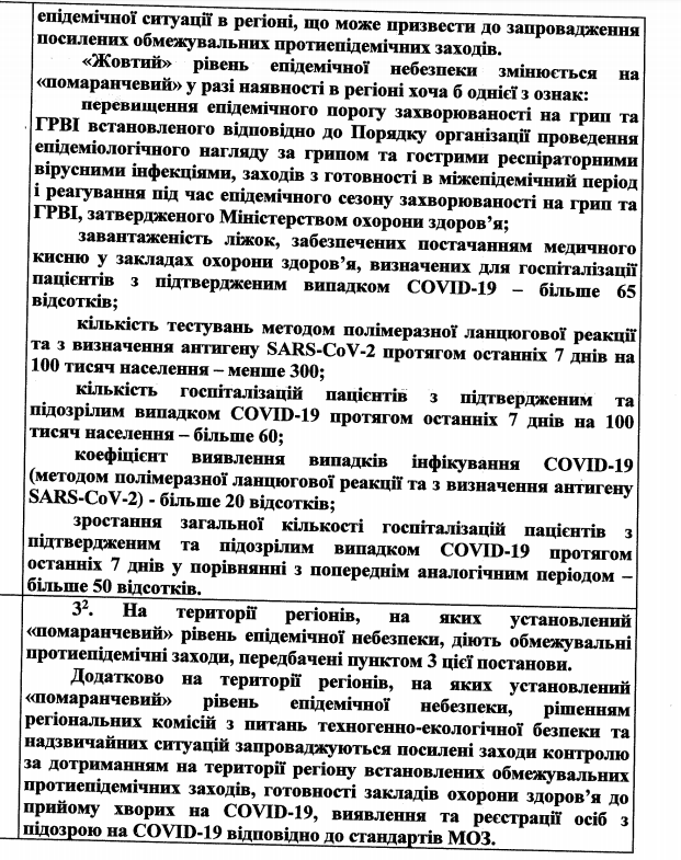 Також МОЗ пропонує поділ на чотири рівні епіднебезпеки: «зелений», «жовтий», «помаранчевий» або «червоний».