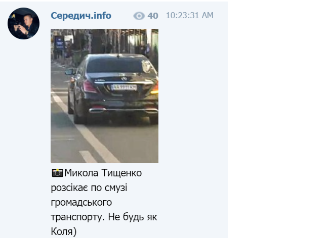 Микола Тищенко, який до виборів щодня їздив на маршрутці, напевно, просто звик до смуги громадського транспорту, — нагадали у Телеграм про випадок, коли Тищенко проїхався в столичному маршрутному таксі.