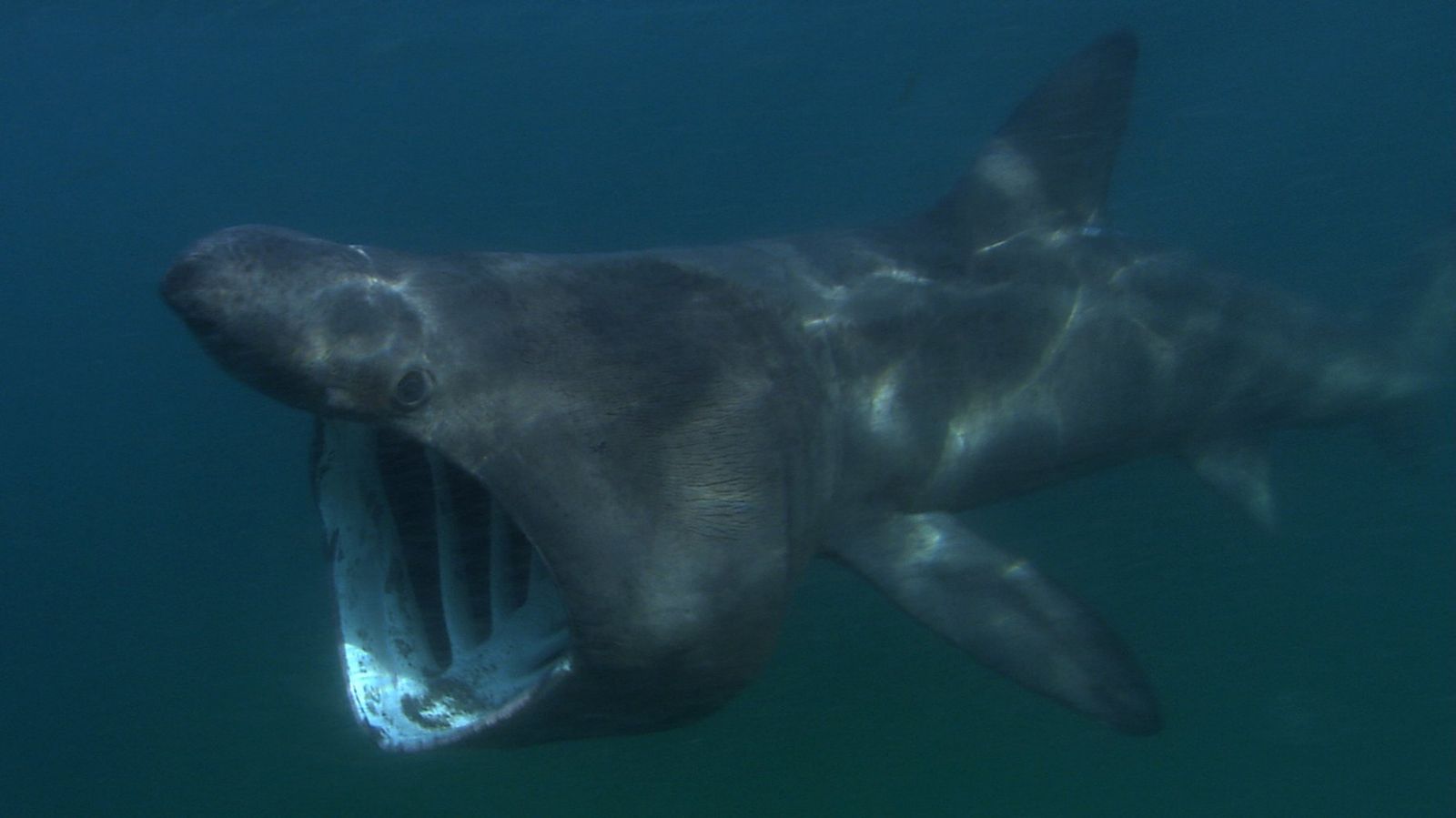На відеозаписі, зробленому в затоці Кім-Бей, можна розгледіти масивні спинні плавники другого за величиною виду акул після китових Cetorhinus maximus.