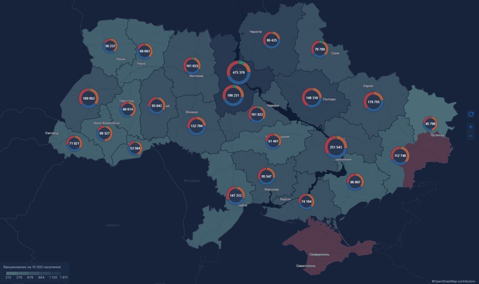 За весь час пандемії в Україні виявили 2 млн 248 тис. 450 випадків коронавірусу, померли від хвороби 52 тис. 847 осіб. Подолати вірус зуміли 2 млн 184 тис. 195 пацієнтів.