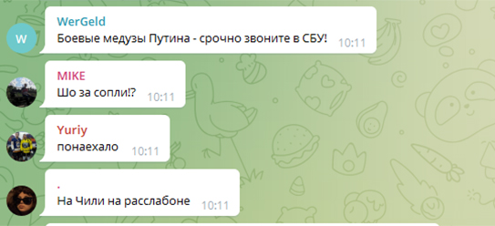 Місцеві мешканці жартують, що медузи нарешті можуть відпочити від людей і розслабитися. Дехто жартує, що це «бойові медузи Путіна», тому варто звертатися до спецслужб.