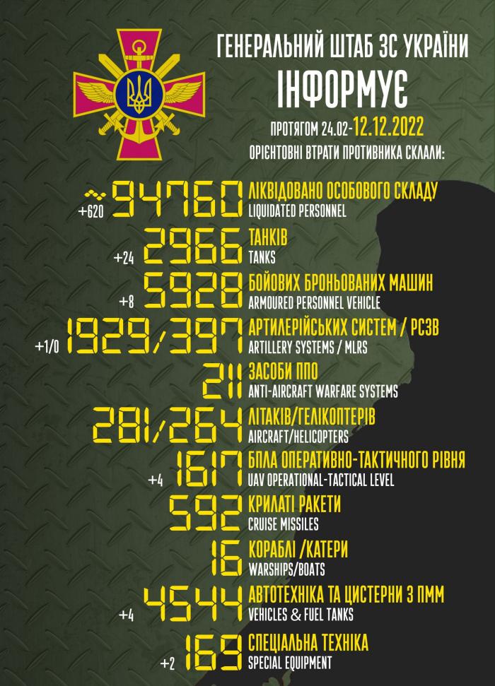 Російські загарбники втратили вже понад 94 тис. осіб, фото: Генштаб ЗСУ