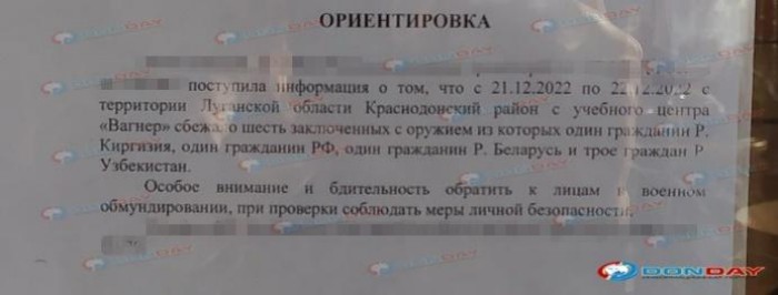 Зазначається, що ці ув’язнені у період з 21 по 22 грудня втекли з території «навчального центру» групи «Вагнера» у Луганській області.