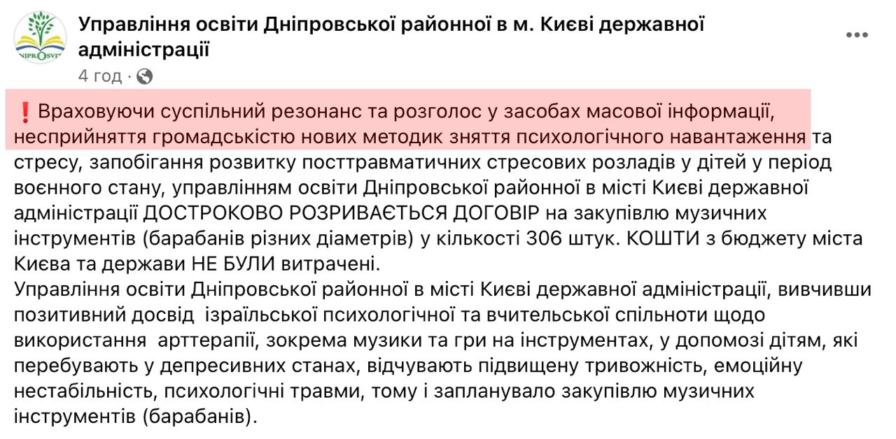 Нагадаємо, нещодавно стало відомо, що Дніпровський район Києва закупив для облаштування укриттів понад 300 барабанів із натуральної шкіри та молоточків для них на понад 890 тис. гривень.