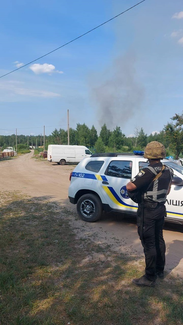 Сталося це через ракетний обстріл: від уламків ракет загорілася трава і почали вибухати залишені окупантами снаряди. Поліцейські Київщини закрили територію і виставили патруль, щоб місцеві жителі не травмувалися, доки ДСНС ліквідує наслідки вибухів.