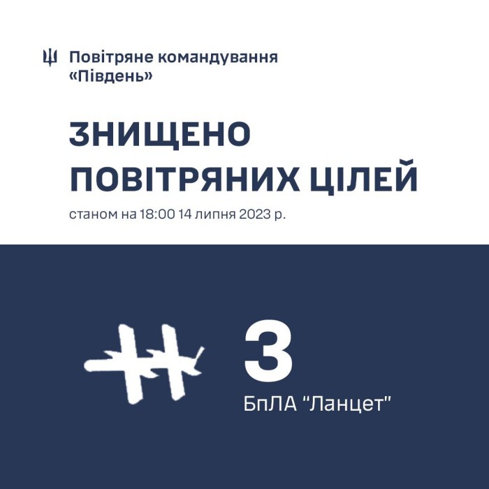 Три російські «Ланцети» збили на Херсонщині 14 липня, фото: Повітряне командування «Південь»