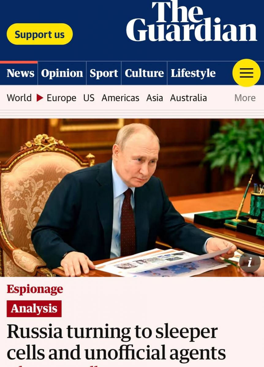 The Guardian написала великий матеріал про те, що після 24 лютого 2022 року Москві доводиться використовувати більш ризиковані методи шпигунства.