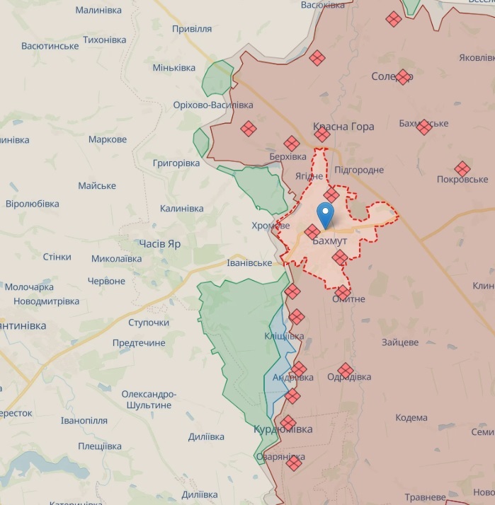 https://racurs.ua/ua/n186977-genshtab-zsu-maut-chastkovyy-uspih-bilya-bahmuta-na-fronti-vidbulosya-39-boyiv.htmlРакурсЗбройні сили України мають успіх на південь від Бахмуту й продовжують витісняти окупаційну армію росії із займаних позицій та закріплюються на досягнутих рубежах. За минулу добу на фронті відбулося 39 бойових зіткнень.