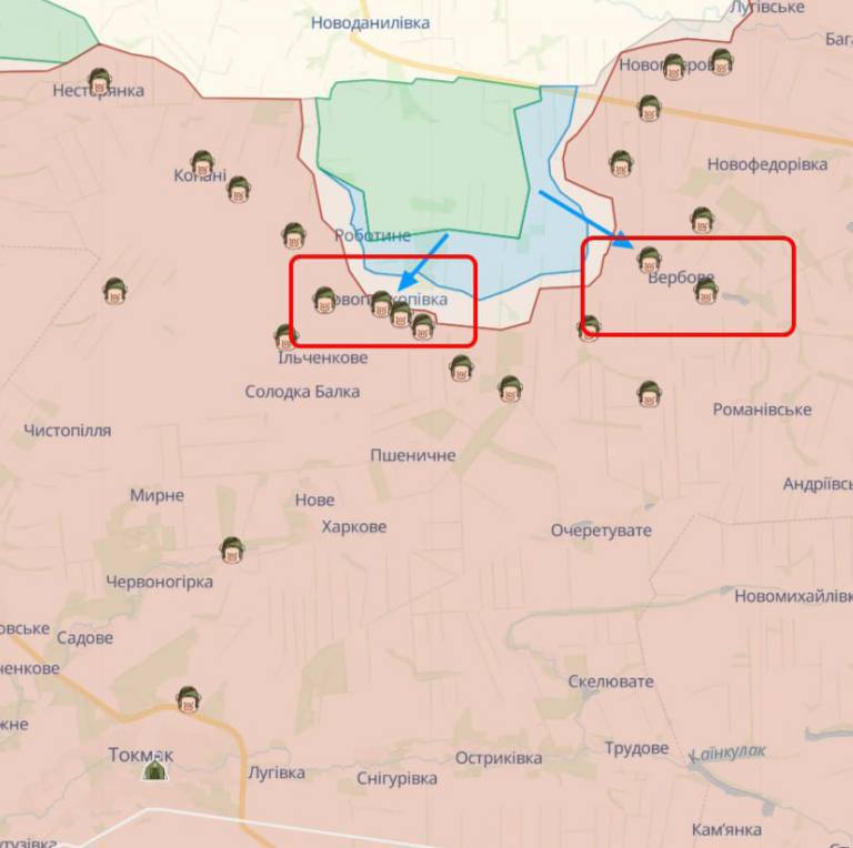 Авіація противника збільшила зону дії на всю ширину ділянки і тепер працює так само активно біля Вербове, як і біля Роботине. Йде постійна робота FPV-дронів. Є випадки «битв між дронами» в повітрі.