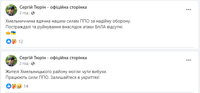 Хмельниччина вдячна нашим силам ППО за надійну оборону, — вказав Тюрін.