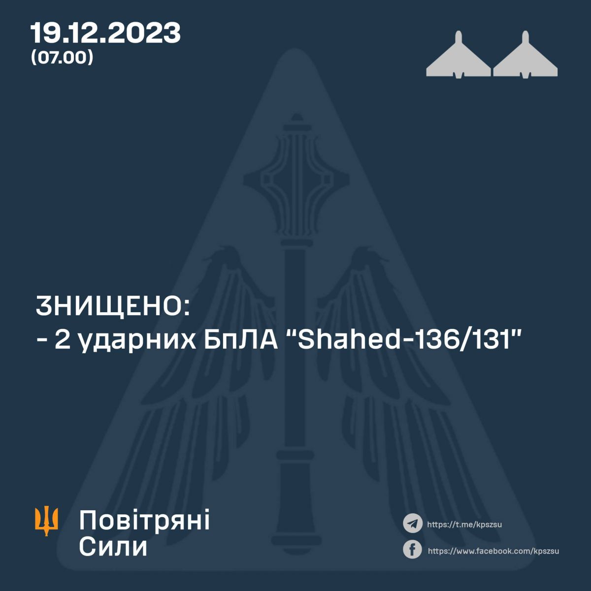 Рашисти в ніч на 19 грудня вкотре атакували Україну «шахедами»