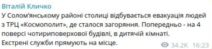 Екстрені служби прямують на місце, — зазначив Кличко.
