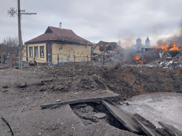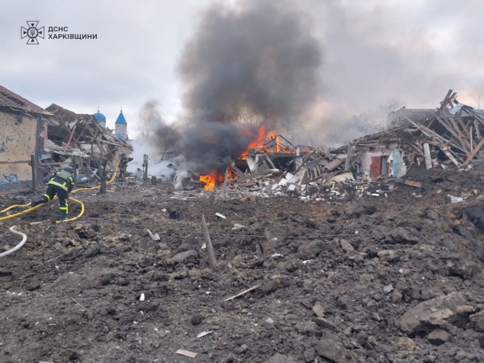 Наслідки російського ракетного удару по Боровій, фото: ДСНС