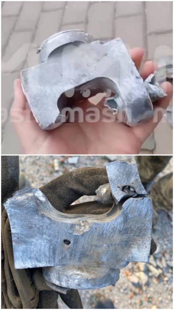 «Мілітарний» пише, що на оприлюднених кадрах видно фрагмент аеродинамічного руля зенітної ракети та елементи фюзеляжу.