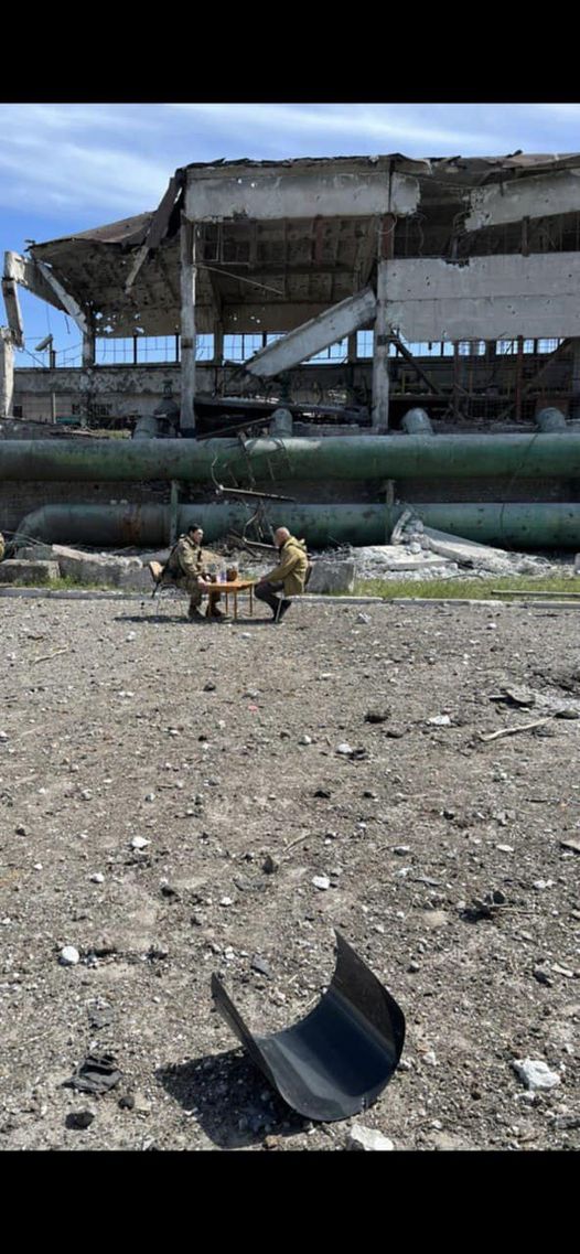 https://racurs.ua/ua/n195509-komandyr-azova-opublikuvav-rarytetne-foto-peremovyn-u-mariupoli-v-travni-2022-roku.htmlРакурсДенис Прокопенко (Редіс), український офіцер, підполковник Національної гвардії України, командир бригади спеціального призначення «Азов», 20 травня опублікував у своїх соцмережах світлину, зроблену під час перемовин на нейтральній території між підприємством «Комунальник» та металургійним заводом «Азовсталь».