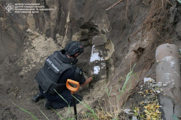 Сапери Міжрегіонального центру гуманітарного розмінування та швидкого реагування черговий раз вилучили смертельно небезпечну плануючу авіабомбу УМПБ Д-30СН у прифронтовому Харкові, — зазначають у ДСНС. — Загрози для мирних жителів немає.