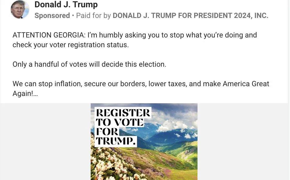 Британське видання Telegraph дослідило, що у своїй передвиборчій рекламі у штаті Джорджія, команда Трампа використала зображення з горами Грузії. До слова, таке саме фото опубліковане на сайті Державного департаменту США, де зібрані поради для американців, які хочуть відвідати Грузію.