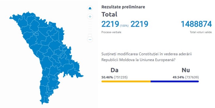 У Молдові прихильники ЄС перемогли на референдумі з відривом лише у 13 тис. голосів (ІНФОГРАФІКА)