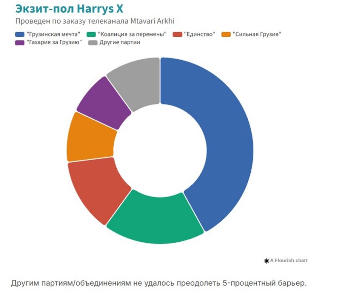 Телекомпанія Mtavari Arkhi опублікувала результати екзит-полу, підготовленого дослідницькою організацією Harrys X.