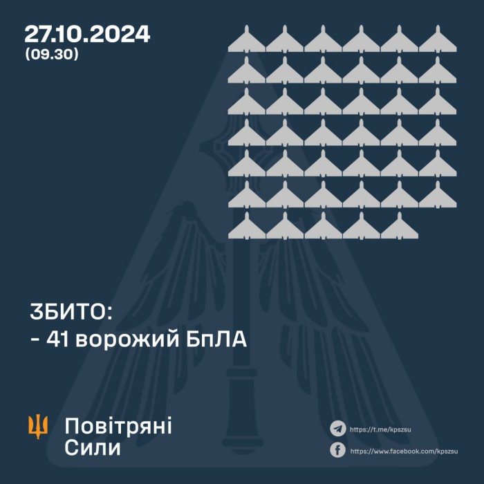41 безпілотник збили сили ППО в ніч на 27 жовтня (ІНФОГРАФІКА)