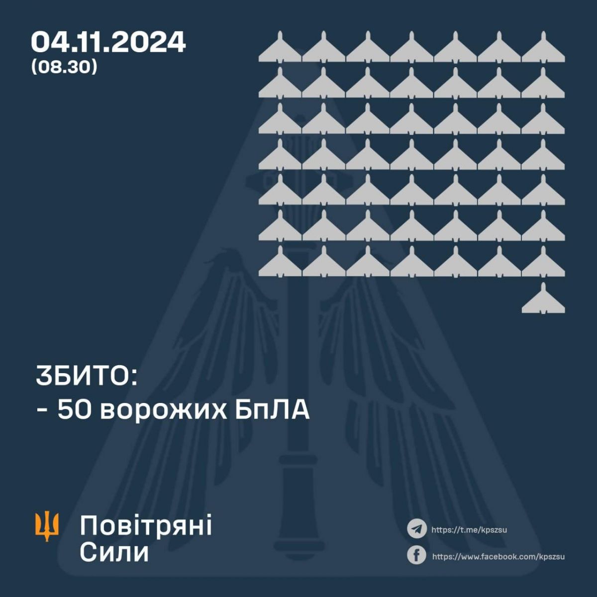 Знищено 50/80 БПЛА, які ворог вночі запустив по Україні
