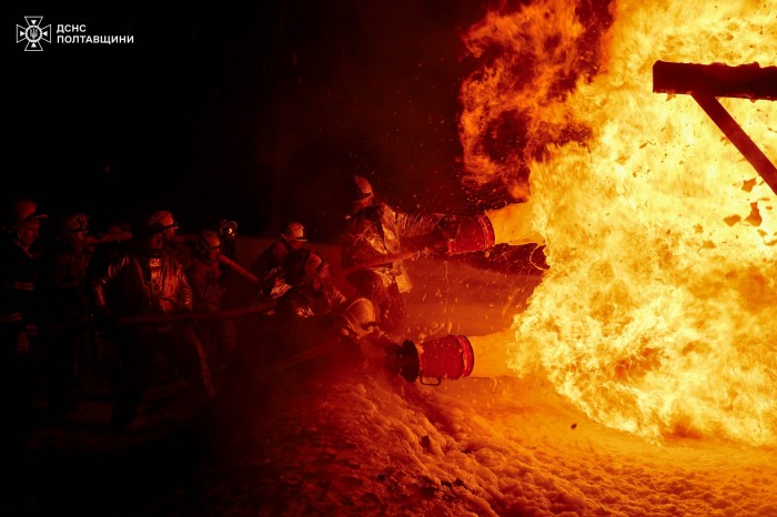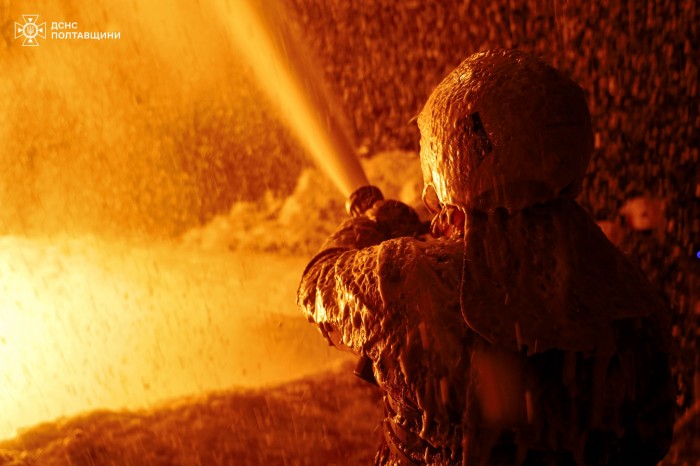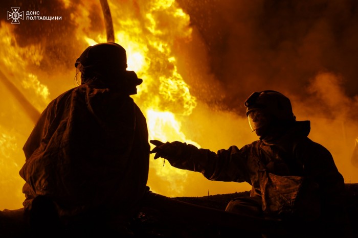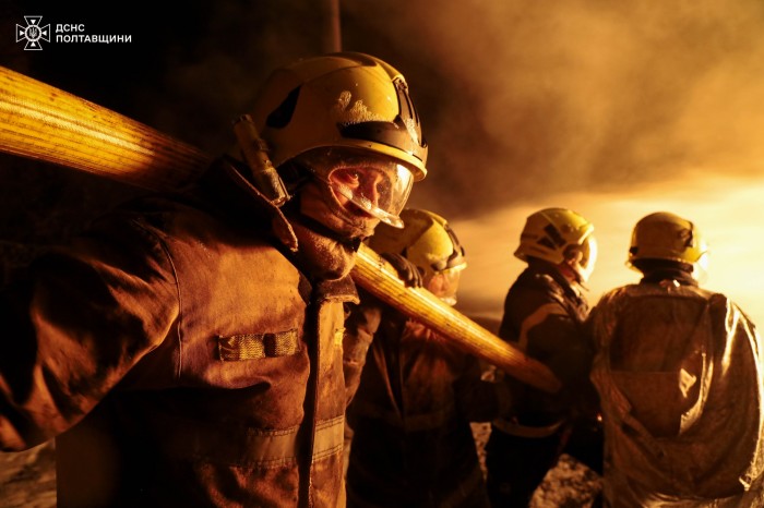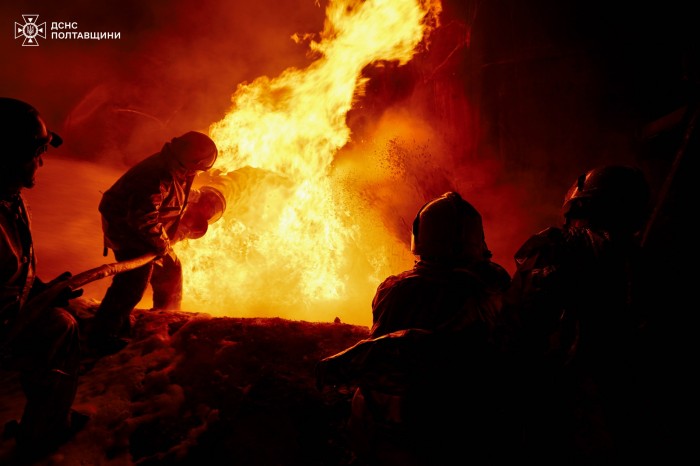 100 рятувальників гасили пожежу після удару російського дрона на Полтавщині (ФОТО)