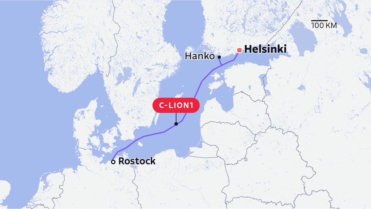 Підводний телекомунікаційний кабель C-Lion1, який прокладений між Фінляндією та Німеччиною, вийшов з ладу
