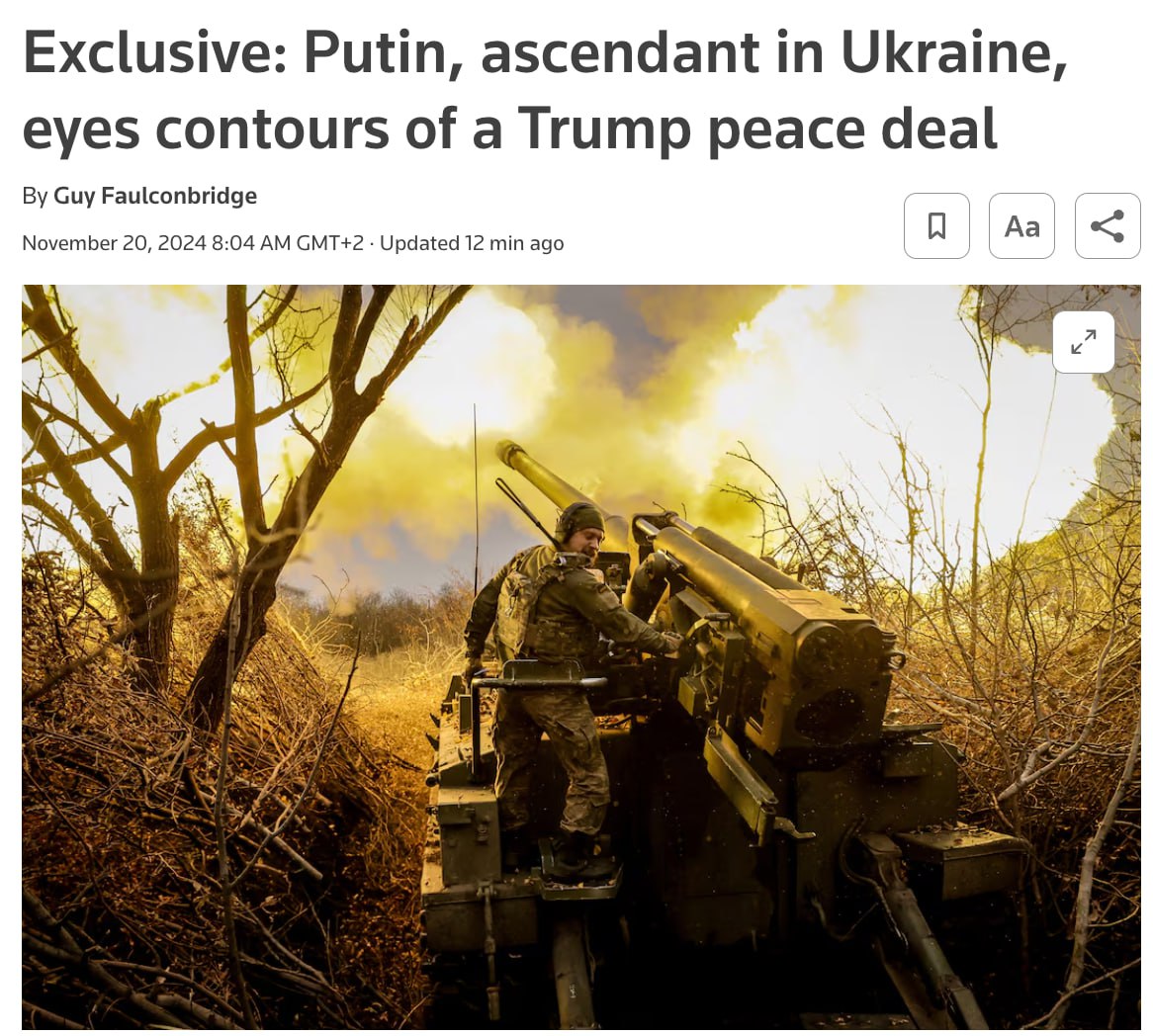 Москва може загалом погодитися заморозити конфлікт уздовж нинішньої лінії фронту. Однак Кремль не поступатиметься у ключових питаннях. Зокрема, путін наполягає на тому, щоб Україна не вступала до НАТО та обмежила чисельність ЗСУ, а також не обмежувала використання російської мови. Про це 20 листопада повідомило агентство Reuters.