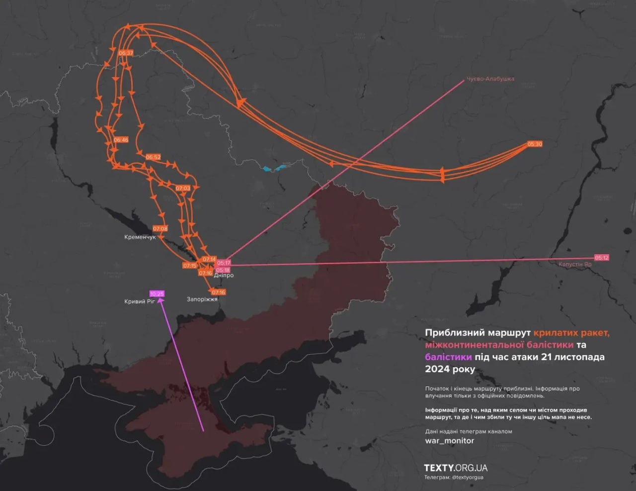 https://racurs.ua/ua/n201428-ce-buv-orieshnik-putin-pro-vyprobuvannya-novoyi-rakety-po-dnipru.htmlРакурсвладімір путін, кривавий диктатор з Кремля, 21 листопада заявив, що росія випробувала балістичну ракету середньої дальності, яку назвала «Орешнік». Йдеться про ранковий удар по Дніпру.
