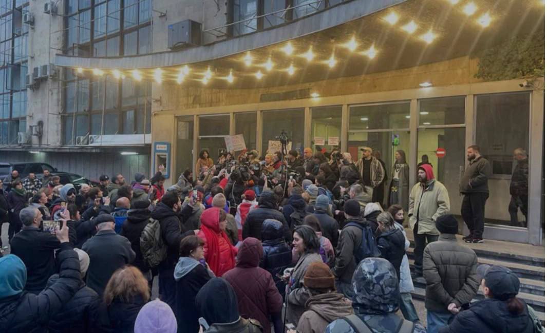 У столиці Грузії протестувальник дійшли до будівлі Першого каналу Грузії, вони закликали суспільний мовник висвітлювати факти насильства на акції без прикрас.
