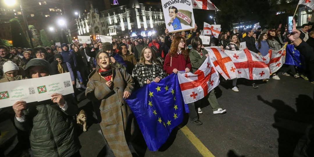 Нагадаємо, що протести, які охопили країну після парламентських виборів 26 жовтня (організатори і учасники скаржаться на масові фальсифікації), спалахнули з новою силою після того, як одразу після того, як перепризначений прем'єр міністр Грузії Іраклій Кобахідзе оголосив, що Грузія заморожує переговори про вступ до Євросоюзу до 2028 року.