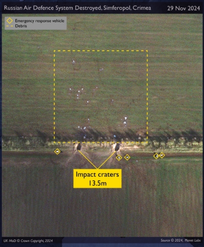 Це другий зареєстрований успішний удар по російських системах ППО С-400 Збройними силами України у листопаді після знищення системи ППО С-400 у Курській області 23 листопада 2024 року, — наголосили британці.