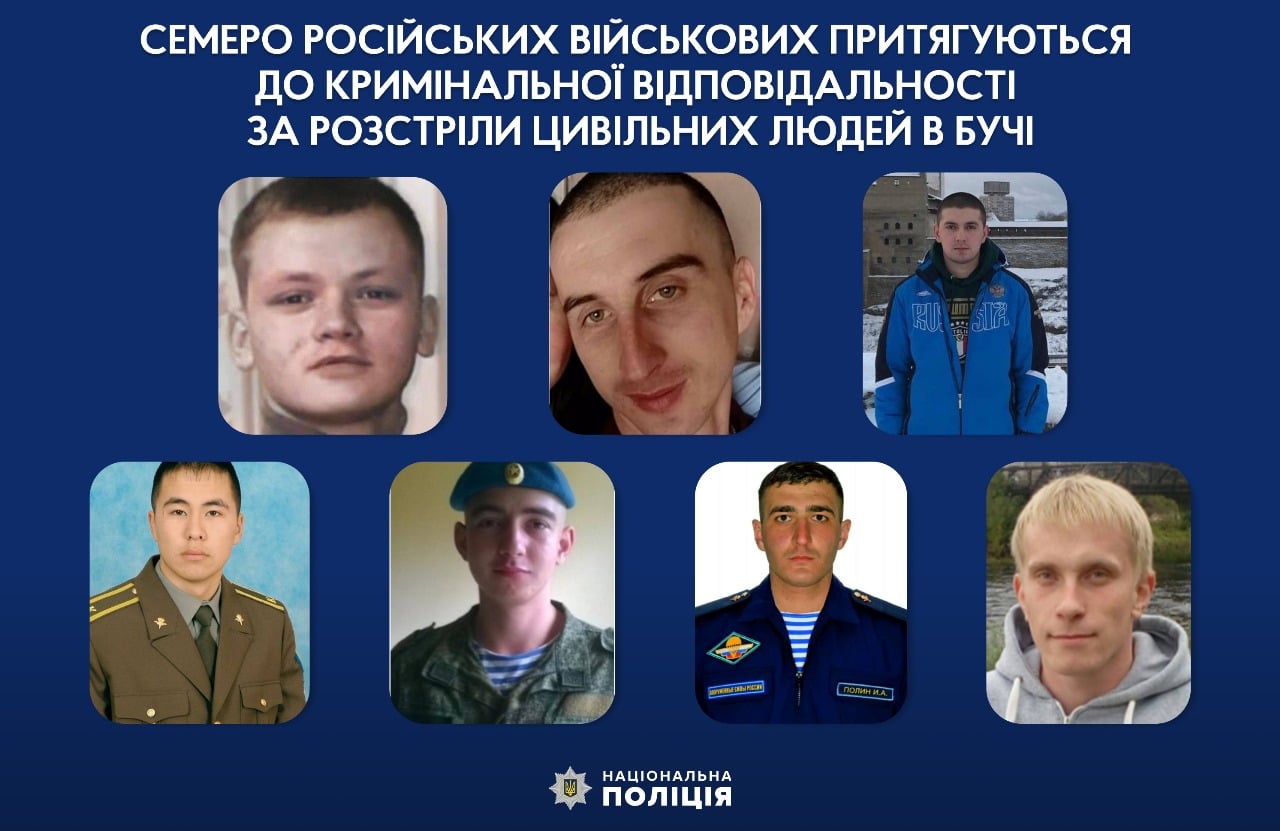 У Нацполіції також поінформували, що семеро російських військових притягуються до кримінальної відповідальності за розстріли в Бучі.