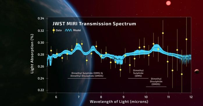 Зазначається, що астрономи цього вишу, використовуючи дані космічного телескопа «Джеймс Вебб», виявили ознаки хімічних речовин диметилсульфіду та/або диметилдисульфіду в атмосфері екзопланети K2−18b, яка обертається навколо своєї зірки в придатній для життя зоні.