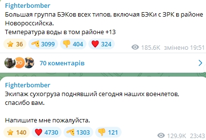 Також у своєму повідомленні пропагандист зауважив, що через використання таких морських дронів діяльність гелікоптерів була дуже обмежена, тому винищувальна авіація є більш підходящою через вищі швидкості, щоб менше часу перебувати в зоні роботи протиповітряної оборони дронів.