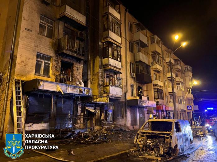 У Харківській облпрокуратурі повідомили, що під час атаки росіяни застосували ударні БпЛА з термобаричними бойовими частинами, які спричиняють масштабні руйнування і численні жертви серед цивільного населення.