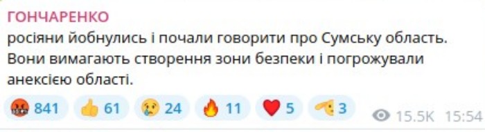 Також, за словами Гончаренка, росіяни також почали говорити про Сумську область.