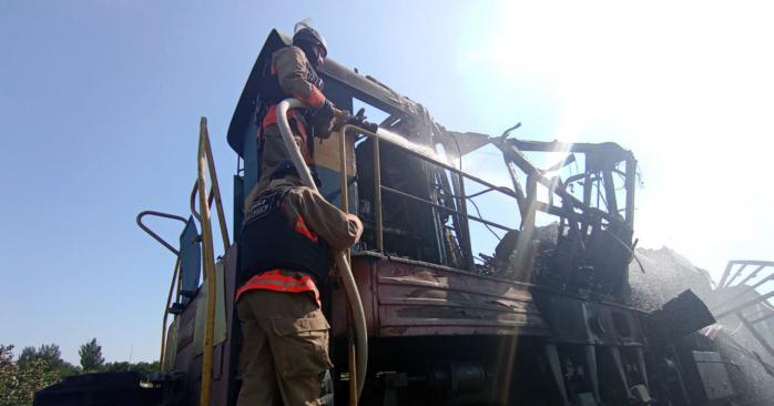 Російський дрон влучив у тепловоз на Донеччині. Фото: ДСНС