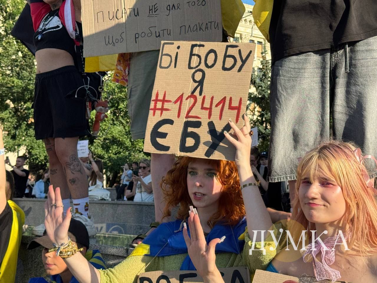 24 липня на мітинг на площі Свободи вийшли близько 250 людей із різноманітними плакатами проти закону № 12414.