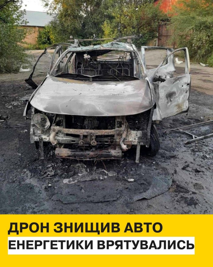 29 серпня бригада ДТЕК проводила аварійні роботи поблизу лінії фронту. У цей момент російський безпілотник влучив у службову автівку — вона згоріла вщент разом із усім обладнанням, — вказано в повідомленні.