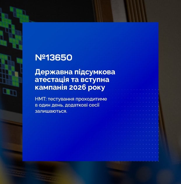 У середу, 3 грудня, парламент 264 голосами ухвалив у цілому законопроект № 13650, який зберігає минулорічну модель проведення НМТ — один день тестування з можливістю додаткових сесій. Перелік предметів залишається незмінним. Вступники складатимуть українську мову, математику, історію України та один предмет на вибір: іноземна мова, біологія, географія, фізика, хімія або українська література. Про це голова комітету ВРУ з питань освіти, науки та інновацій Сергій Бабак повідомив у Telegram.