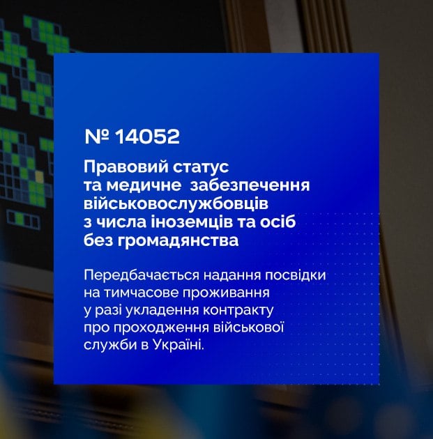 Зазначається, що на цих іноземців та осіб без громадянства частково поширюються соціальні гарантії, покладені військовослужбовцям, які є українцями. Документ передбачає видачу посвідок на тимчасове проживання на строк дії контракту та три місяці після його завершення.