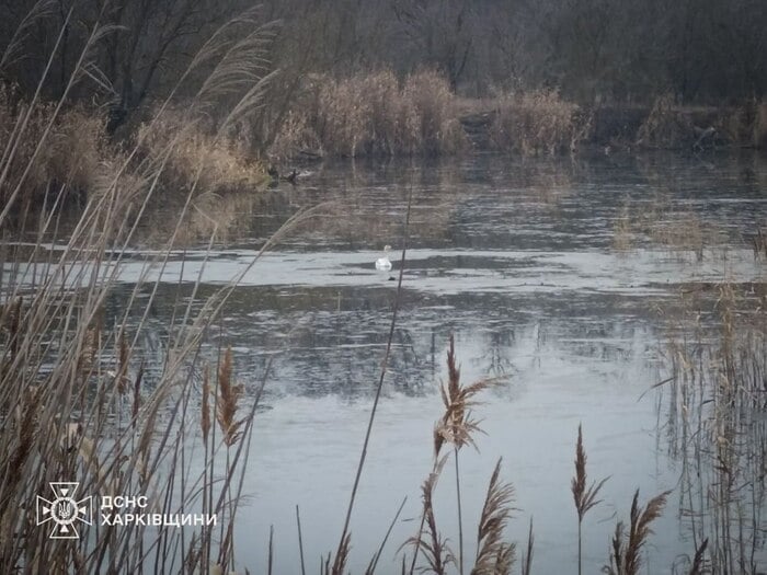 Порятунок лебедя на Харківщині, фото: ДСНС