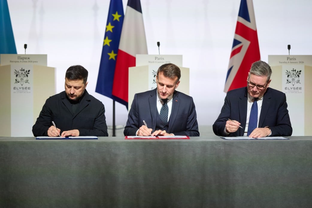 Ввечері у вівторок, 6 січня, президент України Володимир Зеленський, прем'єр-міністр Великої Британії Кір Стармер та президент Франції Еммануель Макрон та підписали декларацію про наміри між Україною, Францією та Великою Британією та Північною Ірландією щодо розгортання багатонаціональних сил на підтримку оборони, відбудови та стратегічної стійкості України. Про цек повідомляється на офіційному сайті глави держави.