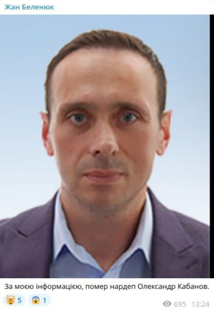 За моєю інформацією, помер нардеп Олександр Кабанов, — зазначив Беленюк.