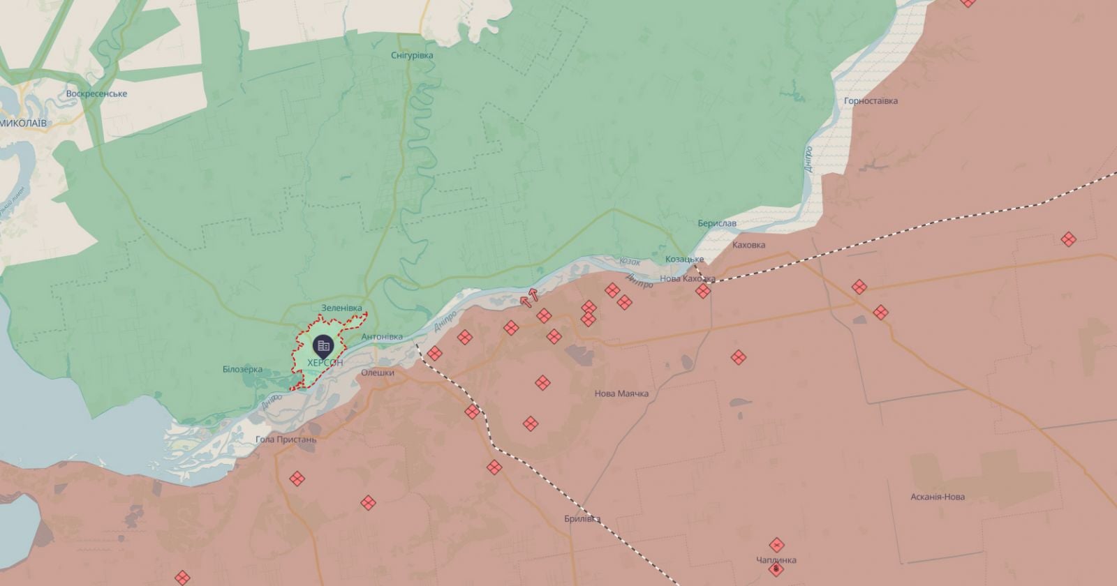 Російські війська відійшли з острова Олексіївський. Карта: DeepState