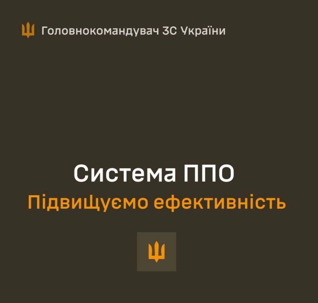 Наразі триває комплекс організаційних заходів із посилення протиповітряної оборони. Зокрема, планується перерозподіл функцій між зенітними ракетними військами та новим родом військ, який відповідатиме за прикриття важливих об'єктів. Про це головнокомандувач Збройних сил України повідомив у Telegram.